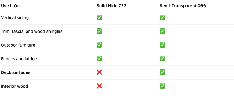 So, if you’re staining a new fence—go semi-transparent. If you’re refreshing weathered siding—solid hide is your best bet.